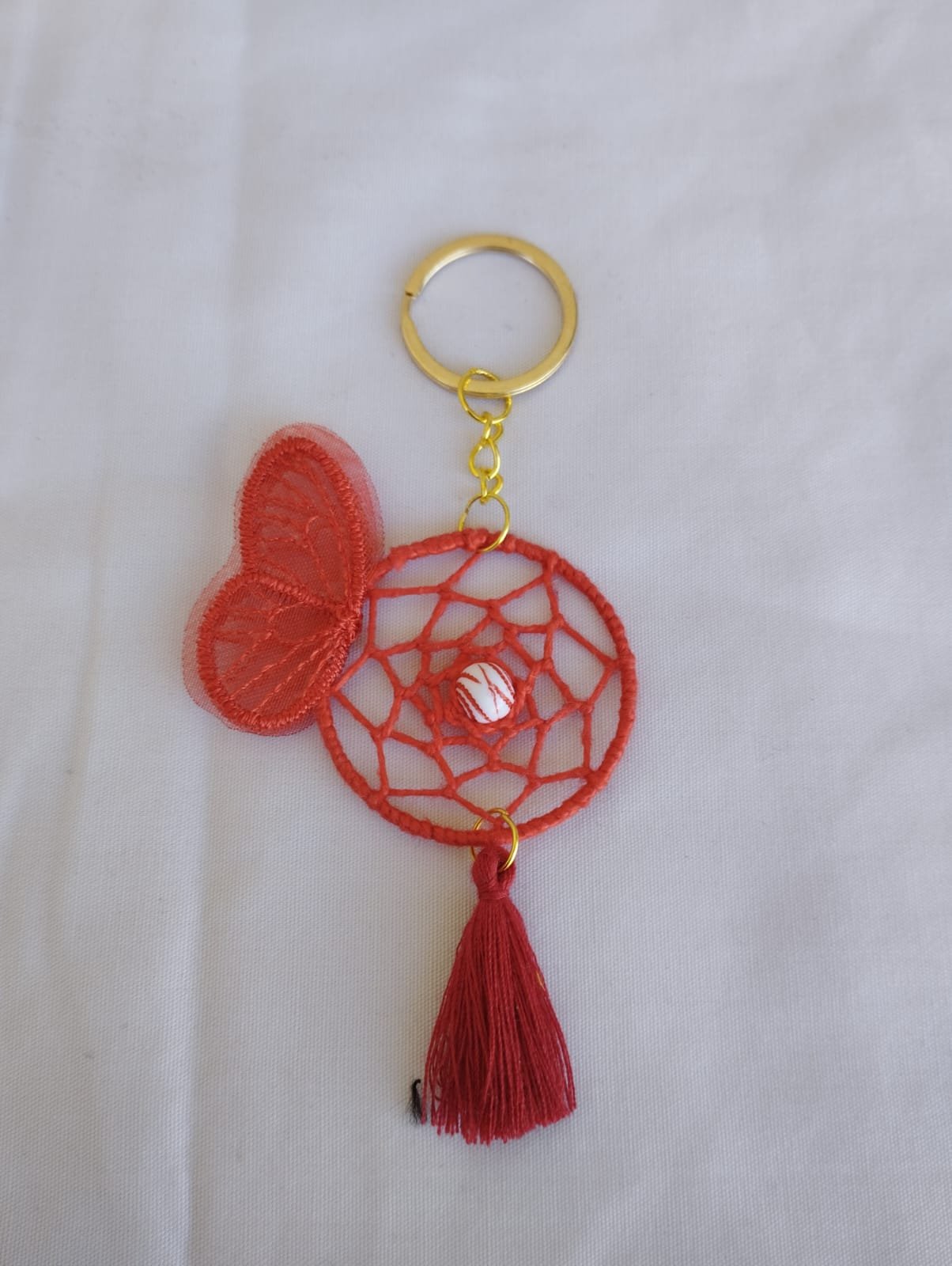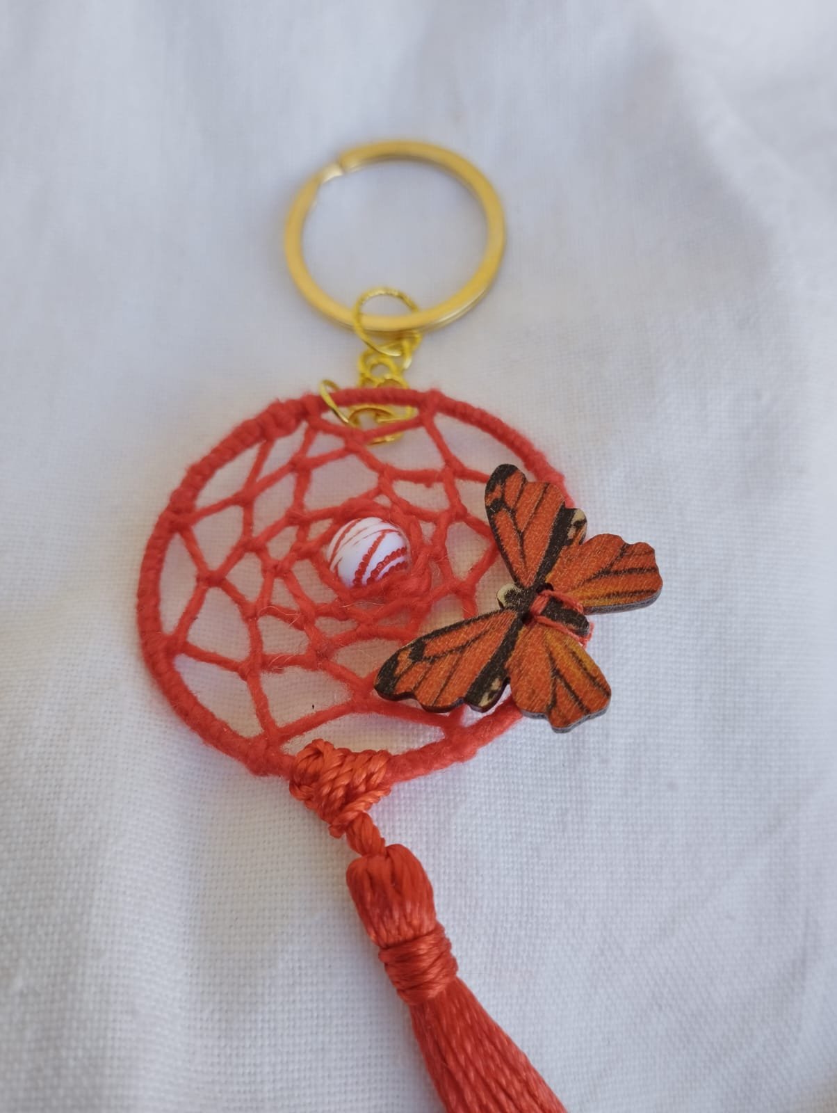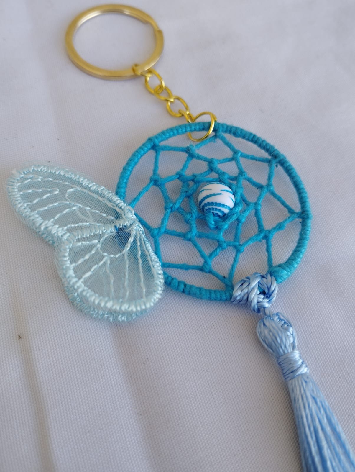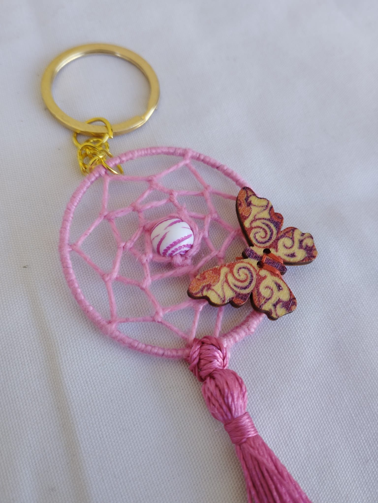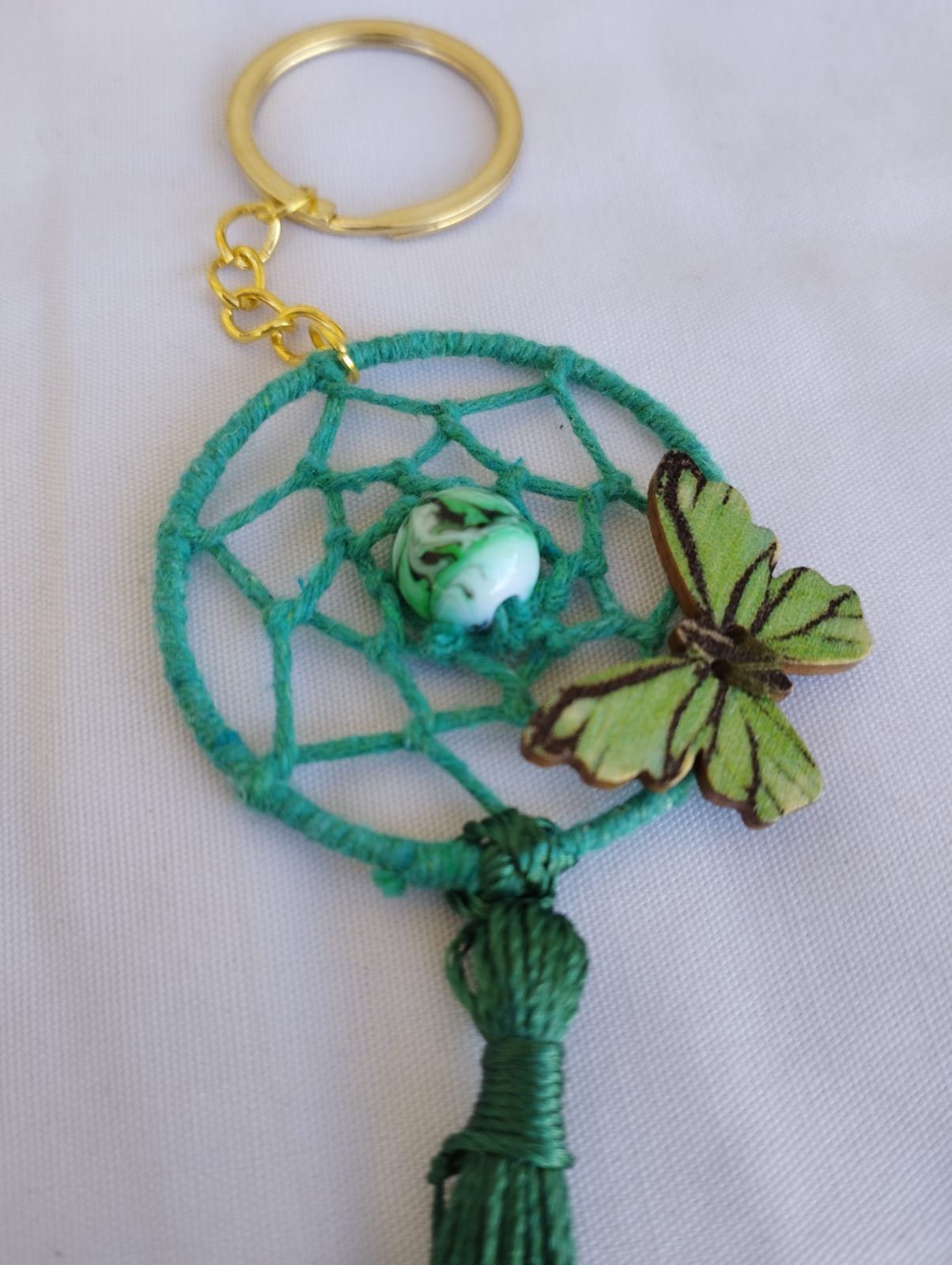 Hermosos llaveros dorado en forma de atrapasueños.